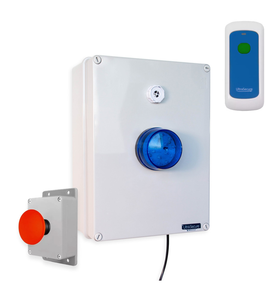 Wireless Lockdown Control Box with Blue Strobe, Multi-Tone Siren, Fixed Trigger & Portable Stop Button
