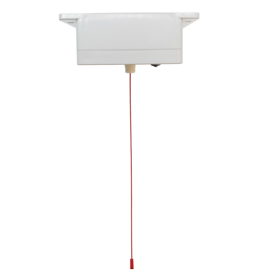 This pull cord is supplied for ceiling mounting and comes with 2 metres of cord, which can be shortened to fit specific requirements.