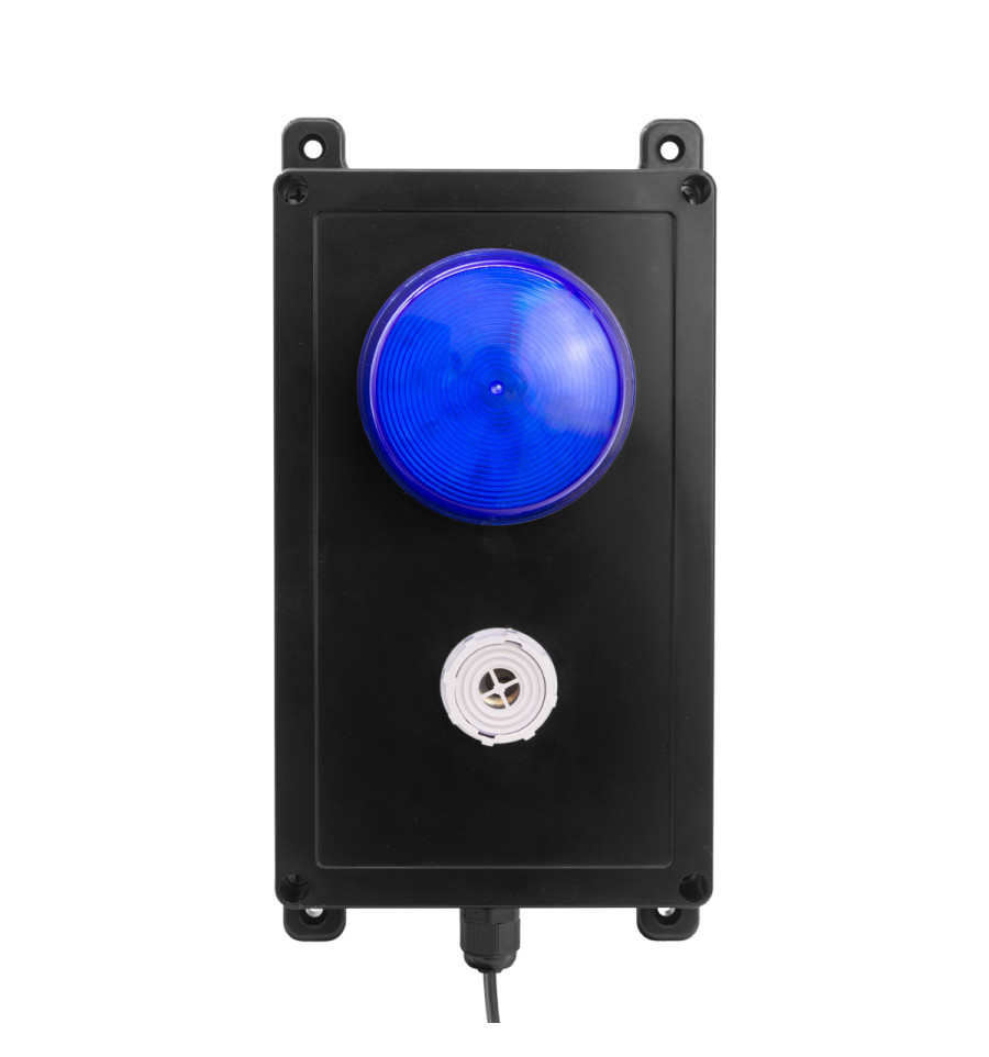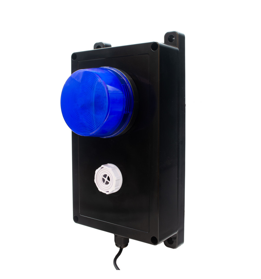 This wireless panic alarm system features a compact, rugged black enclosure with a highly visible blue strobe on the front, making it perfect for shops and small business premises. The unit includes a multi-tone siren and bright flashing strobe for clear, unmistakable alerts, all powered by a simple plug-in transformer for quick installation indoors or outdoors. Paired with 4 long-range wireless panic and a reset remote, the system delivers fast activation, strong visual and audible warnings, and reliable performance when staff need immediate assistance