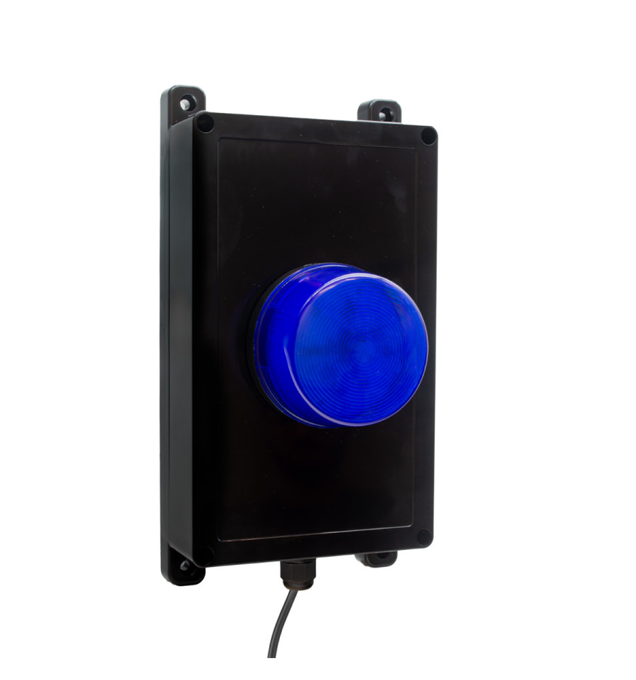 A high-intensity blue flashing strobe engineered to deliver immediate visual alerting, enhancing site safety by providing a clear, highly visible warning signal